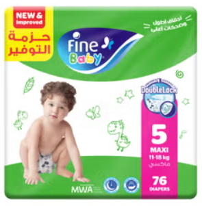 فاين بيبي حفاضات اطفال مقاس ٥ ماكسي - وزن 11-18 كجم - 76 حفاضة