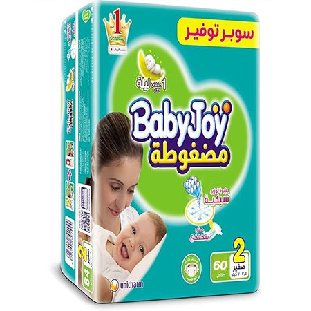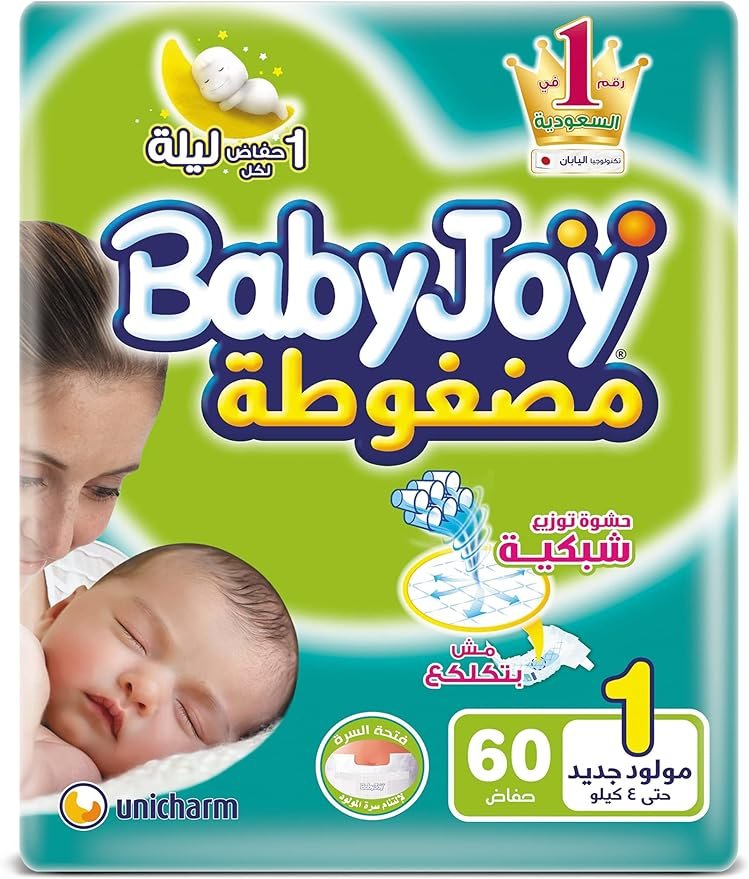 حفاضات اطفال حديثي الولادة مرنة من بيبي جوي - بدون كلكعة مقاس 1,2 - 60 قطعة