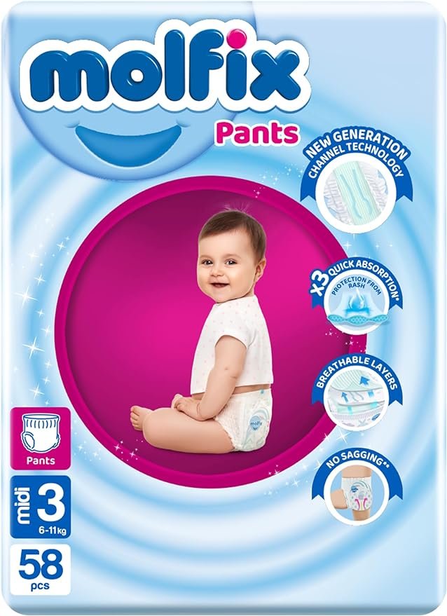 مولفيكس حفاضات اطفال شورت مقاس 3 ,4, 5, 58 قطعة